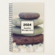 Planificateur de spirales avec une photo avec des piles de rochers sur les deux. Entouré de rochers blancs et de petites fleurs blanches.