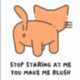 This “Stop Staring At Me, You Make Me Blush” sticker features an adorable orange shy cat showing her back in a cute, playful pose. Perfect for cat lovers, introverts, and aesthetic sticker collectors.