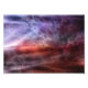Des motifs fractaux blancs qui tourbillonnent sur fond d'orange et de bleu, comme le lever du soleil qui traverse la tempête.