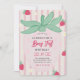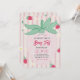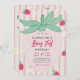 Celebrate your baby’s berry first birthday with this adorable invitation featuring hand-painted strawberries, white strawberry blossoms, and a pink-and-beige striped pattern in the background. It features a strawberry-shaped photo frame to showcase your birthday girl’s picture on the back of the card. This design is perfect for a “Berry Sweet” or “Berry First” birthday theme. All text is fully editable, allowing you to customize the wording.