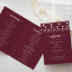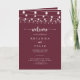 Ce programme de mariage plié bordeaux est parfait pour un mariage classique. Le design est orné de superbes lampes à cordes peintes à la main dans un arrière - plan bordeaux. Incluez un devis ou un court message, une commande de service, une fête de mariage et un message de remerciement.
