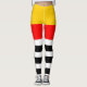 Leggings à motif rayé jaune, rouge, noir et blanc. Créé pour coordonner avec la gamme de vêtements et d'accessoires Souvenirs espagnols.