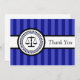 Stripes Legal Scales Of Justice Carte de remerciements (Navy Blue)...Ce carte de remerciements juridique chic est la façon parfaite de dire merci à tous vos amis et votre famille pour leur amour et leur soutien au moment de votre diplôme d'études de droit. Merci également cartes de remerciement pour les cabinets d'avocats à utiliser. Voir WindyCityStationery.com pour notre gamme complète de cartes de remerciement "Stripes Legal Scales Of Justice" dans une large gamme de couleurs ainsi que des invitations assorties, timbres-poste, et plus encore.