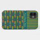 Un coque chic Coque-Mate Xtreme à personnaliser pour votre smartphone iPhone 5/5s, avec un motif tribal jazzy en orange-rouge, jaune-vert et noir sur un Arrière - plan Turquoise, en équipe avec un motif rayé correspondant. Une partie de la collection Posh & Painterly "Jungle Drums".