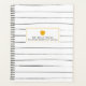 Un planificateur enseignant avec un sketchbook inspiré noir et blanc rayures fines design sur l'avant et le dos. Avant présente du texte personnalisé sous l'illustration d'une pomme jaune doré.