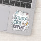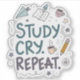 Capture the bittersweet cycle of student life with this stylish “Study. Cry. Repeat.” sticker. Featuring clean, modern typography with subtle handwritten or typewriter vibes, this design pairs perfectly with delicate doodles of books, coffee cups, stationery, teardrops, and tiny stars. The muted pastel palette—dusty pink, lavender, soft grey, and cream—balances emotional ups and downs with soothing calmness. Ideal for notebooks, laptops, or phone cases, this sticker is a comforting companion for anyone embracing the study grind.