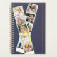 Planificateur personnalisé que vous pouvez customiser avec 8 de vos photos préférées, votre nom et n'importe quelle année. Le modèle photo est configuré pour que vous puissiez ajouter vos photos, qui sont affichées au format carré / instagram, en simple bande photo. Le design se compose d'une palette de couleurs chic et moderne de bleu profond et d'orange épicé rouille.
