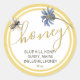 Fleur composite bleue avec une jolie bordure jaune et une abeille queen vintage. Le miel est écrit dans une police décorative. Ajoutez votre nom et vos coordonnées avec le poids net.