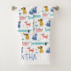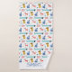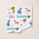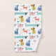 Jolie collection de chiens de bandes dessinées dans les tons rose, rouge, bleu et jaune doré. Personnalisez la serviette de bain avec votre nom ou message en lettres bleues blanches assorties.