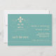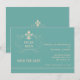 Annoncez vos plans de mariage à vos amis et famille avec ces cartes Save the Date Fleur de Lis de style rétro élégant. La carte présente un design de symbole Fleur de Lis élégant avec de la place pour ajouter votre date de mariage. La carte indique "save the date" dans une impression blanc cassé de style rétro. Personnalisez avec vos noms et date de mariage. Montré ici sur un fond vert vintage.