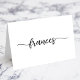 Remarque importante : Il s'agit d'un produit à carte plate que vous devrez marquer et plier seul après les avoir reçus. Pour obtenir les meilleurs résultats, utilisez un outil de pointage de carte d'un magasin d'artisanat. Cette taille va se replier dans une taille 2,5 x 3,5. Dans le système, vous pouvez créer vos propres cartes de mariage avec une belle calligraphie noire moderne et élégante pour le nom donné par un invité contre un arrière - plan blanc clair. Customisez la taille, la couleur et les styles de police selon vos besoins. Créez une carte pour chaque invité et ajoutez-les individuellement à votre commande. La police est composée d'un script de style brosse moderne avec des touches décoratives élégantes sur les deux côtés.