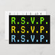 Cette conception de carte RSVP nerdy comporte le message "R.S.V.P." sur le devant. Il comporte également un formulaire RSVP personnalisé au dos pour que le destinataire puisse remplir. Les cartes RSVP comme celle-ci pourraient peut-être être utilisées pour savoir qui assistera à un wedding shower, à une fête d'anniversaire, à un baby shower ou à une autre célébration.
