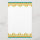 Une feuille de papier d'écriture chic, avec une bordure de fleurs de Pot Marigold, haut et bas. Partie de la collection Posh & Painterly 'Marigold Medley'
