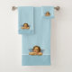 Élégant chérub Raphael sur le kit de serviettes de bain bleu clair.