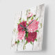 Cottage horloge murale chic fait dans un look patiné de clôture en bois lavé blanc, avec des graphiques de fleurs de pivoine rose vintage décorer le milieu de l'horloge. Les chiffres verts des heures 13, 3, 6 et 9 décorent le bord extérieur de l'horloge. Belle horloge qui fait une merveilleuse idée cadeau.