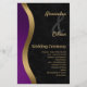 Programme de mariage élégant et élégant violet et or contemporain, avec un design charmant. Le texte peut être personnalisé pour votre jour de mariage, anniversaire ou tout type de célébration.