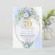 Stylish Blue Gold Floral 70th Birthday Invitation