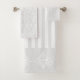 Elégante et élégante serviette gris clair et blanche, avec motif damassé et rayures simples.