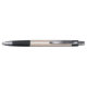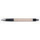 A ballpoint pen with a black cap and tip. The barrel has a light, textured pattern. The pen is displayed horizontally, showcasing both front and bottom views.