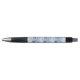 Stylo design avec illustration d'un éléphant bleu avec une souris brune ; illustré par Radka Kavalcova / MaxiHarmony
