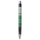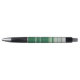 Bandes en bandes horizontales en simple crochet, autour du tonneau de stylo. Blanc avec des lignes vert fin (2 nuances) et vert gris sur le dessus, large bande de vert foncé sur le fond. Personnalisez le nom en blanc sur la bande inférieure.