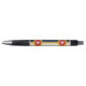 Stylo design avec le drapeau de Tulsa, Oklahoma. Un drapeau beige et bleu marine avec un bouclier or Osage contenant un cercle rouge et une étoile beige à six branches