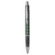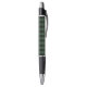 Stylo personnalisé pour un monsieur plus âgé avec son nom en grandes lettres blanches audacieuses difficiles à manquer sur un stylo imprimé avec un motif de chèque de buffle vert pour un look masculin et rustique.
