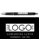 Un stylo d'affaires noir et blanc ultra-moderne utilisant votre nom, profession et logo d'entreprise. Parfait pour quiconque aime les conceptions contemporaines et simples.