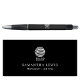 Un design de stylo d'affaires noir ultra-moderne utilisant votre nom, profession et logo d'entreprise. Parfait pour quiconque aime les conceptions contemporaines et simples.