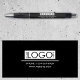 Un design de stylo de société simple et élégant avec un fond noir. Personnalisez les détails et faites-en votre propre. Un design idéal pour les promotions de société, la papeterie des employés, les cadeaux clients, le marketing et la publicité de société.