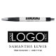 Un design de stylo commercial ultra-moderne noir et blanc utilisant votre nom, votre profession et votre logo commercial. Parfait pour tous ceux qui aiment les conceptions contemporaines et simples.