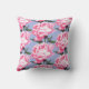 Jetez l'oreiller avec motif rose tourbée sur arrière - plan bleu.
