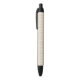 A pen with a textured beige body and black accents shown from front and side views. The sleek design conveys simplicity and functionality.