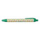 Ce stylo personnalisé présente des illustrations de seltzer ou canettes de soda aromatisées dans des couleurs estivales vives d'orange, jaune, vert citron, vert kelly, rouge, rose saumon et crème dressées contre un arrière - plan bleu clair. Il est prêt à être personnalisé avec un nom en lettres de script vert kelly.