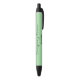 La ligne supérieure du texte d'affichage est un élégant script noir sur ce stylo vert menthe. Vous pouvez remplacer le texte d'affichage par un message personnalisé tel que le nom de votre société et le numéro de téléphone. Le stylo est vert menthe. Le texte est noir. Ce stylo promotionnel n'a pas de minimums.