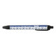 Ce stylo à encre à thème volleyball peut être customisé avec le nom de l'athlète sur une bande de couleur bleu foncé pleine longueur et numéro de maillot et dispose d'un motif de minuscules volleyballs qui ont des panneaux bleu clair, bleu foncé et blanc - arrière - plan est personnalisable blanc - par katz_d_zynes