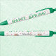 Motif de Pâques festif minimal fond typographie élégante verte "Joyeux Printemps" et place généreuse pour le nom d'entreprise ou personnel script décore ce stylo à encre noire élégant avec une garniture verte. Modifiez le texte pour le rendre vôtre en utilisant le modèle simple fourni. Idéal comme faveur de fête, remerciement personnalisé, cadeau promotionnel, cadeau de fantaisie pour amis et famille. Achat minimum de 2. Voir "À propos de ce produit" sur le côté pour plus d'informations. Fabriqué aux États-Unis.