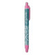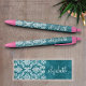 Stylo Noir Modèle de Damas gris turquoise Texte personnalisé