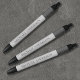 Un stylo de bureau en métal brossé argenté élégant qui s'accorde avec le classeur de documents importants. Caractéristiques élégantes de la police serif sur un fond en métal brossé argenté. Conçu pour vous par Blackberry Boulevard.