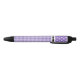 Stylo en encre avec un mignon plaid violet et des pois blancs sur le violet avec un joli ruban de coeurs noirs.