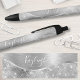 Personnalisez facilement ce stylo à motifs en métal brossé argent et en faux parties scintillant glamour avec votre propre nom personnalisé.