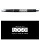 Un stylo d'affaires simple et élégant avec un arrière - plan noir. Customisez les détails et faites-le vous-même. Un design idéal pour les promotions d'affaires, la papeterie d'employés, les cadeaux de clients, le marketing d'entreprise et la publicité.