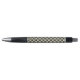 Ce motif moderne de la moitié du siècle comporte le noir et les formes géométriques bronzages.
