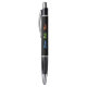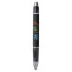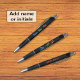 Ce stylo a trois icônes de style pictogramme de triathlon en bleu, vert et orange, avec le texte accompagnant "Course de vélo de natation" dans les mêmes couleurs. Ajoutez un nom ou des initiales ou d'autres légendes courtes. Le corps du stylet a un arrière - plan noir, et le texte modifiable est en orange pour correspondre à l'icône "Exécuter".