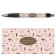 Un motif mignon d'ustensiles de cuisine et de pâtisserie sur le thème rose et marron. Les illustrations sur le thème de la cuisine de boulangerie comprennent un rouleau à pâtisserie, fouet, poche à douille, desserts, spatules, cuillères et plus encore. Autocollant parfait pour une entreprise de pâtissière à domicile, chef pâtissier professionnel, boulangerie, magasin de desserts et plus.