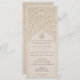 Ce faire-part de mariage présente une étonnante vitrine de dentelle islamique dans une palette de crème sophistiquée. Les détails complexes du motif en dentelle rappellent la grandeur de l'architecture islamique, avec des motifs floraux et géométriques qui s'entrelacent pour former un décor serein et élégant. La couleur crème confère une qualité intemporelle, rappelant les sculptures en ivoire et l'art ancien, offrant une toile délicate aux détails mariages. Le design évoque un effet tridimensionnel, comme si la dentelle était délicatement taillée dans la pierre, invitant les hôtes à une fête mariage qui promet la même attention à la beauté et à la grâce.
