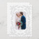Ce design festif présente des branches de vacances fines argentées contre un arrière - plan blanc de noël enneigé.