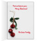 Sucre de canne, cloches Jingle, bonbons de Noël Carte de voeux - L'extérieur est une photographie de sucres de canne dans un bocal en verre avec le soleil se répandant du côté. A l'intérieur se trouve une photo de cloches rouges avec les sentiments "de chez nous à la vôtre, Joyeux Noël." Photo originale de Kristin Corlett. Le K dans KNS Gear. Joyeuses fêtes !