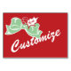 Décorez vos fêtes de Noël ou de Fêtes avec ces cartes de table personnalisables de style rétro avec écriture blanche, un arc vert avec baies sèches et accent feuille sur un arrière - plan rouge.