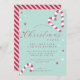 Invitation de fête de Noël non traditionnelle en vert pastel et rose avec sucres de canne. Disponible en 2 couleurs.
